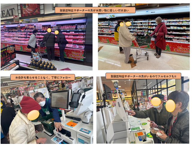 12月3日にマルミヤストア野口店で「スローショッピング」を行いました。「スローショッピング」とは認知症の高齢者の方が急がず、自分のペースでゆっくりと買い物を楽しめるようにサポートする仕組みです。不安から家族や公的補助に任せてしまっているお買い物を、生活の一部としてこれまで通り行っていただきたいという思いから、佐伯市高齢者福祉課とチームオレンジの認知症サポーターと当社で協力しての実施となりました。